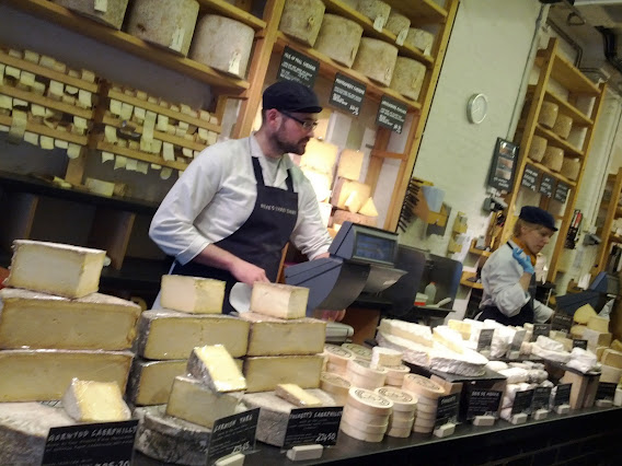 So, in honour of my 10th post, I decided to go for the triple crown of new things today.  This morning began with a leisurely tour of Borough Market, where the plethora of cheeses gave me a full on cheese-gasm.  There is a stall that has four raclette machines, and a few griddles that make the most delicious toasted cheese and onion sandwiches, which I begrudgingly shared with my hosts – pure bliss!  Since a picture is worth a thousand words, here’s 3k (the third is from a magazine cover in a wonderful cheese shop that well, just speaks to me on so many levels):