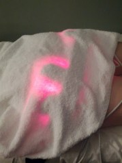 The next step involved strapping the paddles, to quote Bridget Jones, to my wobbly bits. A mineral oil was first applied prior to the four paddles being strategically positioned. Two little pads were also tucked into nearby lymphatic nodes – that’d be my groin – to help the released bits of blob pass through my system. Then, the laser was turned on, and you feel a little like a cow being branded for about 25 minutes… Just kidding – it does get pretty warm, though, maybe like in a sun bed, except you’re out in the open on a comfortable treatment bed, so you can relax and while the minutes away with something intellectually stimulating, like Angry Birds.
