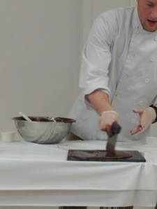 Let’s get this party started! To avoid anyone trying to guzzle the white chocolate directly from the bottle (surely I wasn’t the only one thinking it), David smartly provided us with a few tiny cups of different flavoured ganache – a liquid blend of heavy cream and chocolate = pure bliss. The mixes of chocolate with cinnamon, chocolate with ginger, and chocolate with cayenne pepper made our mouths salivate and tingle with delight. It was on!
