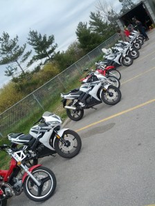 Finally, we got to start the bikes up, open up the clutch, and test out the brakes. I’ve never really been a fan of brakes, as they seem to want to hold you back from exploring new territory. I really liked the throttle, though. That’s like the gas pedal. Kick ass! We spent the remainder of the clinic practicing starting and stopping, and trying to maneuver our way through s-turns at slow-ish speeds. We got to try out 4 different models and styles of bikes, which was super fun and interesting. No real surprise, I suppose, but I loved the biggest one. It just seemed to be the most comfortable… Although the ‘crotch rockets’ (their term, not mine) were chomping at the bit to take off, and made me feel the need for speed, which, I suppose would be a teensy bit dangerous in the long run… Probably?