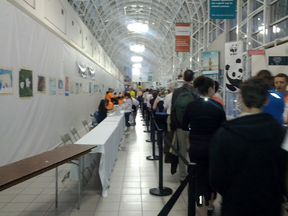 Getting back to that point about the magical 1,776 stairs, which, by the way, is a big part of what makes it the tallest metal staircase on earth, I have a bit of a bone to pick. The ‘core’ part of the stair climb, between the points where they stamp your time card, consists of 144 flights of 12 steps each. That number does not take into account the ‘bonus’ stairs you need to climb to get out of the parking lot, or into the Atrium on the skywalk in the first place, nor the stairs up and down to go around the current aquarium construction to get to the main entrance.