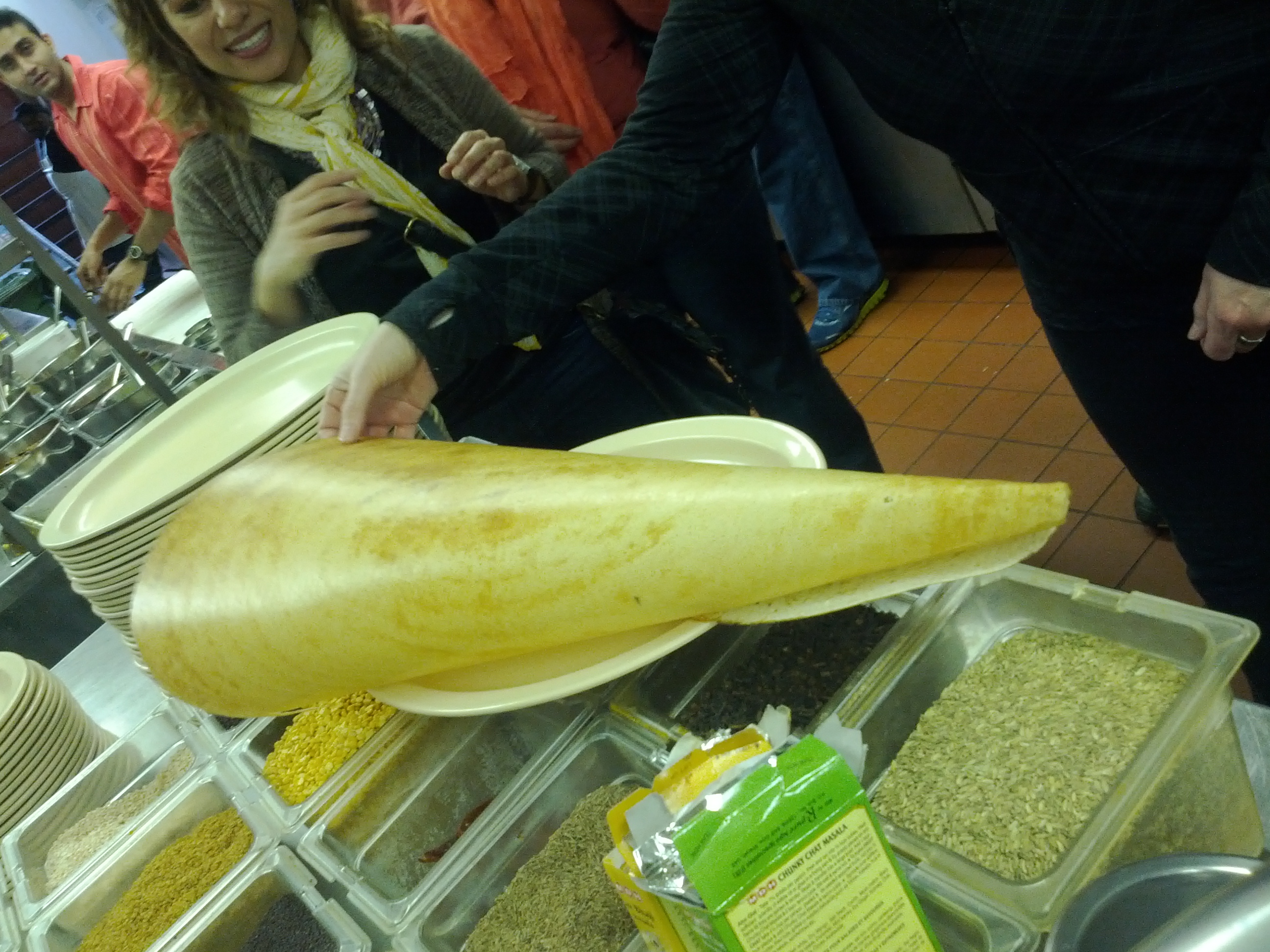 The appetizer platter was superseded by a zesty potato stuffed dosa, followed by three dishes served with perfectly cooked basmati rice that we devoured so quickly, that I forgot to take pictures of them. Whoops!