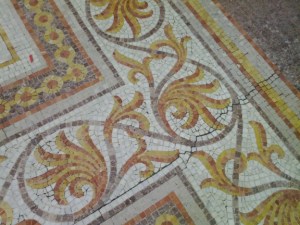 The courtroom that was in session on that particular day was smartly cordoned off from the part that was open to the public, so that your average citizen could plunk themselves down high on the bench and get their picture snapped throwing the book at their buddy. Good times! All the high jinx aside, it is undeniably a gorgeous building. I am fascinated with the stair risers that contain intricate patterns of leaves made out of wrought iron. The fancy ceilings and stained-glass windows are only outdone by the elaborate mosaic floors. Not too shabby!
