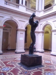 By far, the most stunning part of the interior is the two story atrium, which is currently housing a sculpture of what appears to be a woman hoisting a child up in her arms, although it could be a modern day interpretation of The Lion King holding up Simba… Hard to say.
