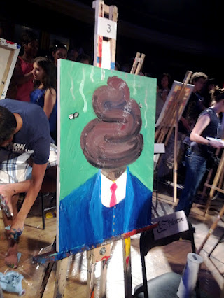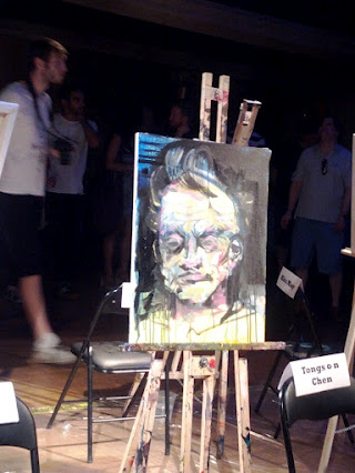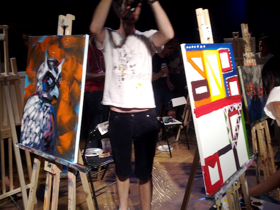 Tonight, I witnessed the Top Chef equivalent of the emerging art world. And it rocked the casbah! Basically, the competition consisted of two rounds of eight artists, who battled it out head to head for twenty minutes to see which of them could produce the crowd favourite within that time frame.
