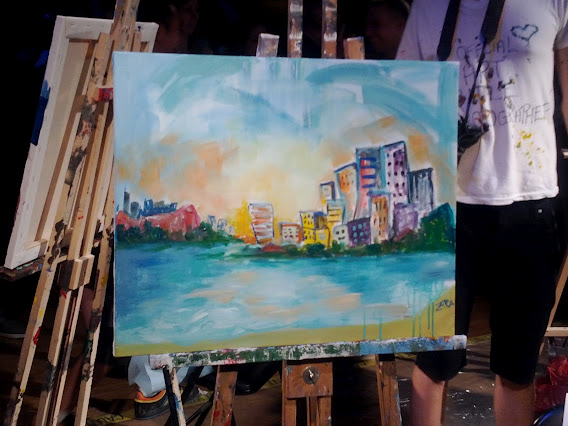 It was truly fascinating, humbling, and inspiring all at the same time to witness the canvases coming to life in such a short time frame. It was also interesting to see how your own perception of each work of art evolved with every minute that elapsed. A scene that may have completely grabbed you early on became something that made you want to bitch-slap the artist a mere quarter of an hour later. The weird part was that you were close enough to do so at any time. Oh, the restraint!