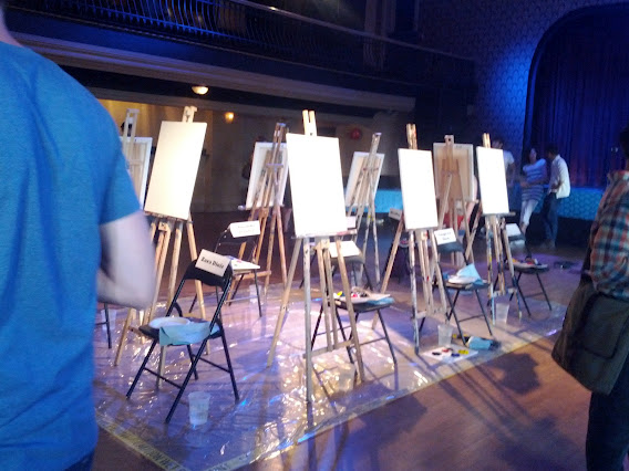 The Great Hall, in uber-trendy West Queen West, proved to be a suitable venue for the hipsters both in the crowd and at the easels. A good time was had by all, including the volunteer artist who used his fingers, toes and cheek in his masterpiece, which, while it did not earn him a place in the final paint-off, it did seem to garner him free beer from at least one delighted fan, so he got his own happy ending.