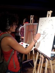 To add a little excitement, six of the artists (three in each of the first two rounds), were randomly selected from a hat filled with the names of willing audience participants. The top two from each of the first two rounds then competed in the grand finale. And it was intense! Luckily, there were refreshments available and entertainment provided, including a warm-up singer and DJ, to keep us all jazzed up throughout the evening, as we reminded ourselves that art truly is in the eye of the beholder.