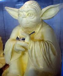 Unlike Mythbusters, I encourage you all to try this at home, particularly if you have children and you’re looking for something fun yet practical to do on a rainy day. Or maybe you just need more butter around the house because of its many other applications, like unsticking your hands after crafting, oiling a squeaky door when you’re out of WD-40, shining up your leather, swallowing your pills, moisturizing your dry hair, lathering up skin for a shave, and, of course, getting that ring off of your finger. Or for finally getting around to carving that yoda butter statue you’ve always wanted. Hint: you’re going to need more jars.
