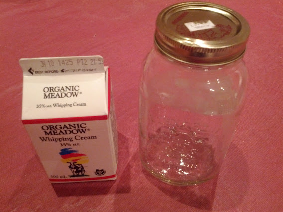 I started off by pouring heavy cream into the jar, fastening the lid tightly, and then shaking for what felt like hours, but what was probably a matter of minutes.