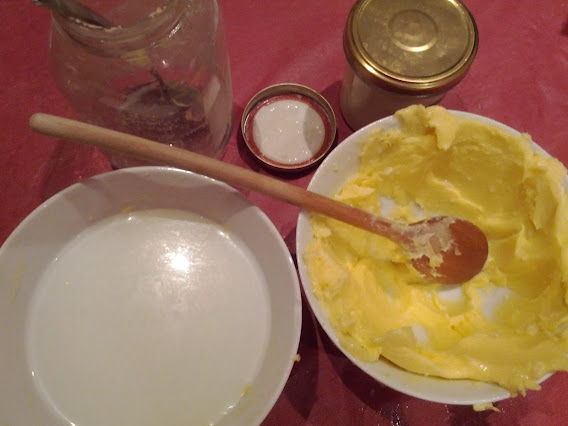 And that’s when it happened. Almost instantaneously, like a phoenix rising from sodden ashes, a lump of something faintly recognizable as yellow butter magically appeared in the jar. It was as though it had spontaneously renounced the buttermilk, like some kind of religious exorcism where the butter was part of the holy kingdom, and the buttermilk was the devil’s juice… Or something like that. Overdramatic? Who, moi?